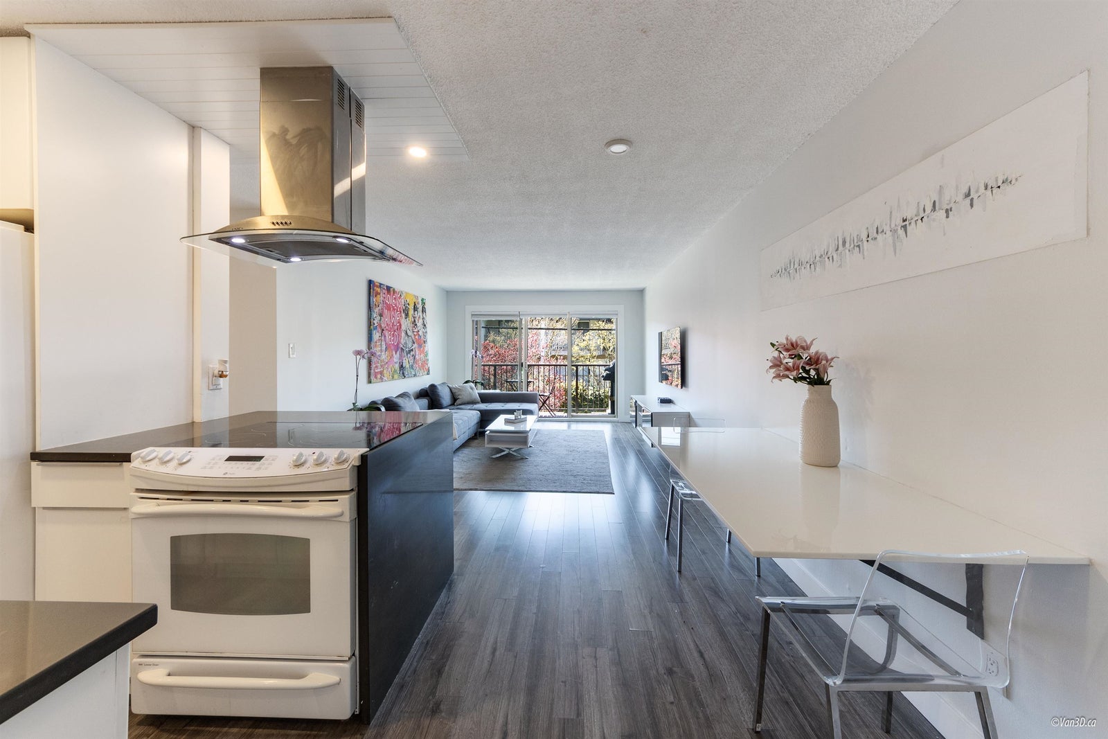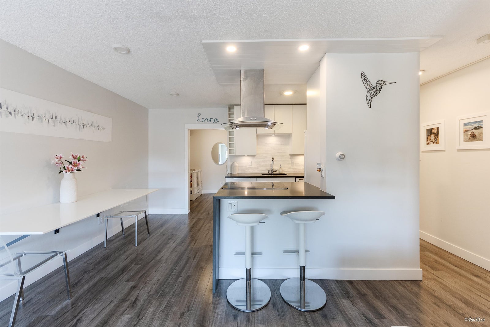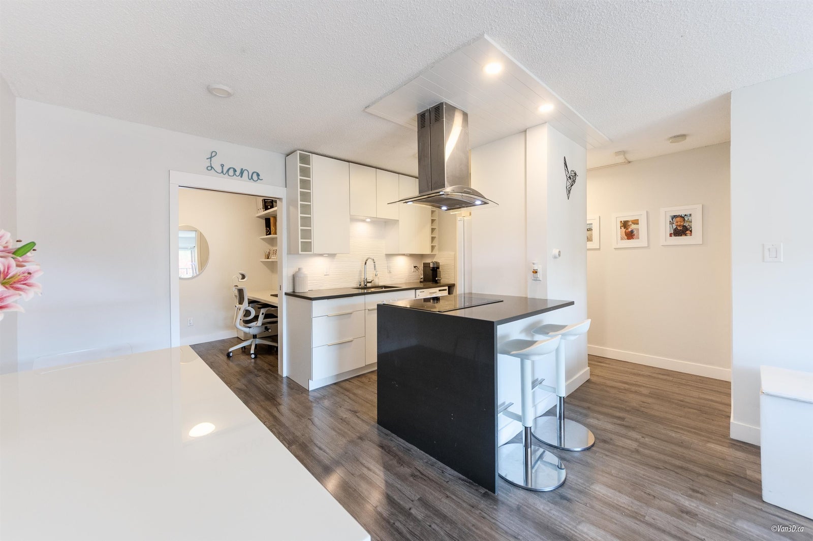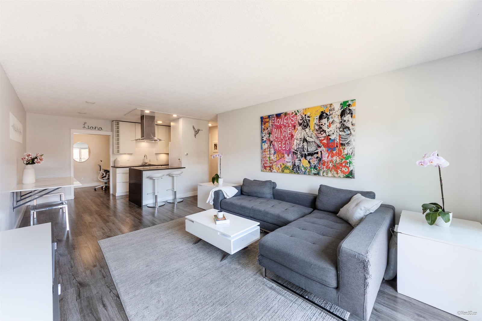 Villa Valencia - steps to Lower Lonsdale. This fully renovated suite boasts a open concept layout flooded with sunshine. Positioned on the quiet southside of the building overlooking loads of greenery. No detail has been spared in the complete transformation of this suite, from the sleek kitchen to the spa-like bathroom and modern flooring. The versatile 1 bed + den/ Jr. 2 bedroom layout provides endless possibilities, with a spacious primary bedroom and a second bedroom or office space. Enjoy quick and easy access from the main level, just steps from the lobby. Offering 1 parking spot and 1 storage unit.