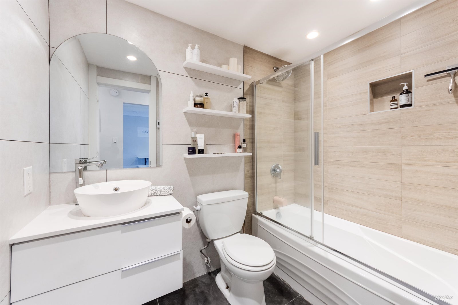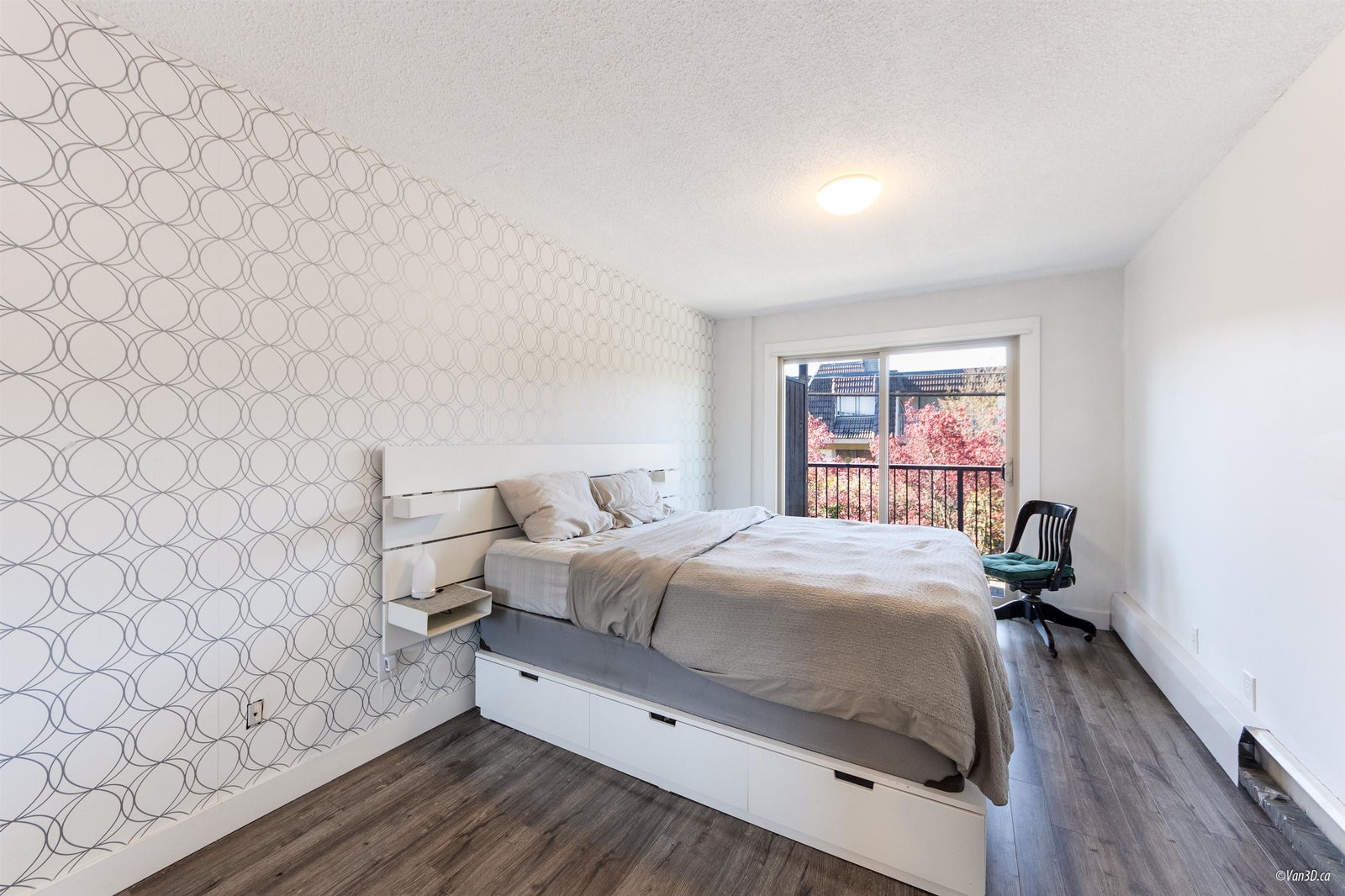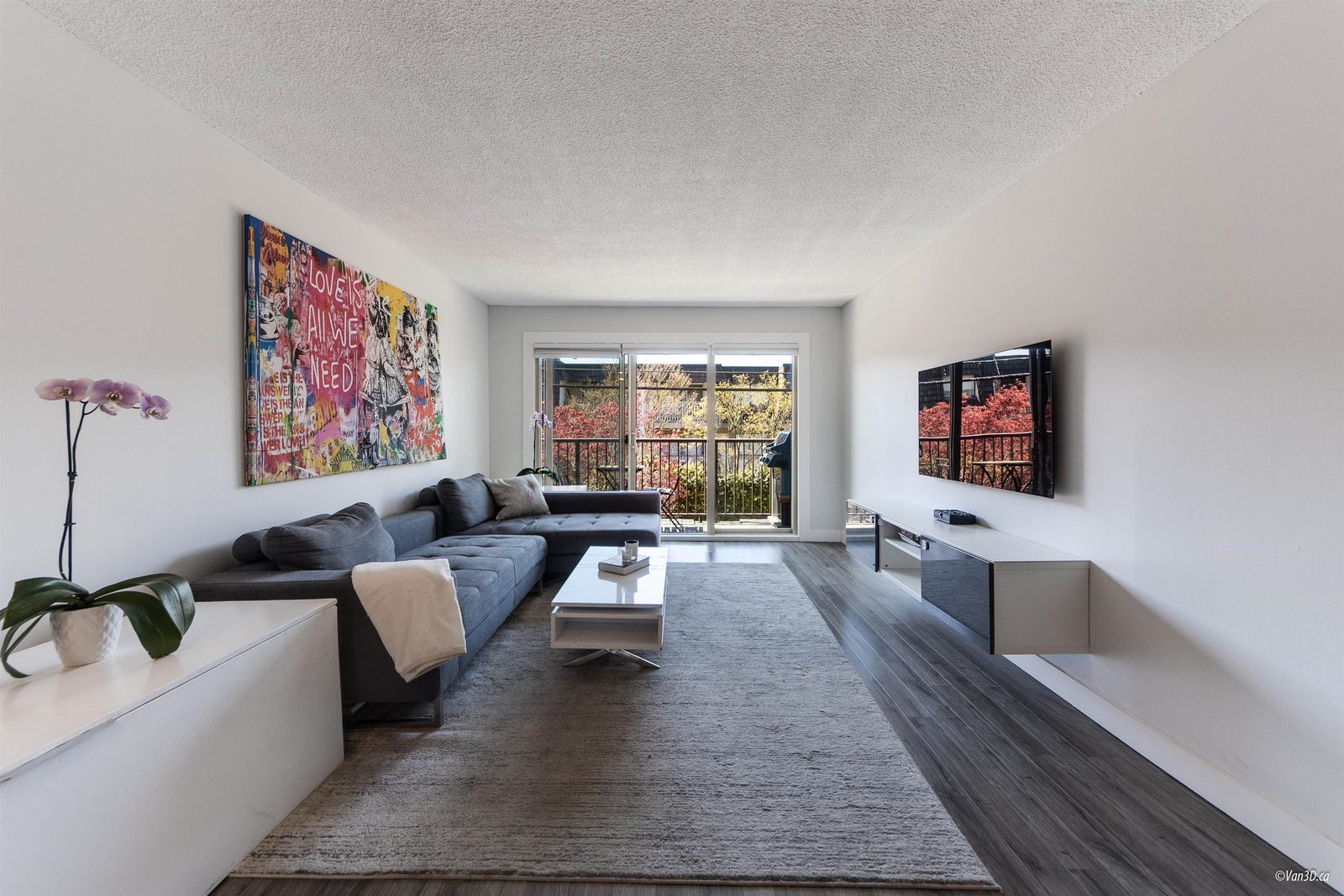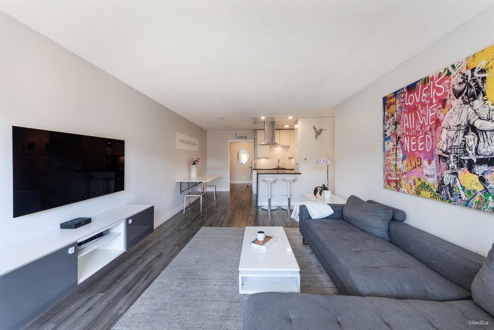 Villa Valencia - steps to Lower Lonsdale. This fully renovated suite boasts a open concept layout flooded with sunshine. Positioned on the quiet southside of the building overlooking loads of greenery. No detail has been spared in the complete transformation of this suite, from the sleek kitchen to the spa-like bathroom and modern flooring. The versatile 1 bed + den/ Jr. 2 bedroom layout provides endless possibilities, with a spacious primary bedroom and a second bedroom or office space. Enjoy quick and easy access from the main level, just steps from the lobby. Offering 1 parking spot and 1 storage unit.
