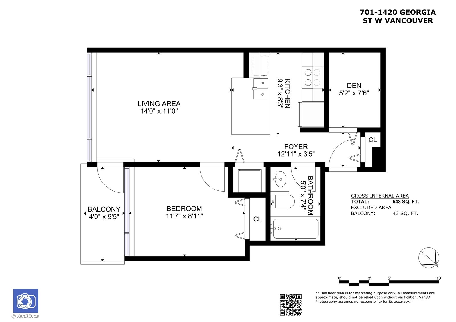 543 Sq. Ft.
