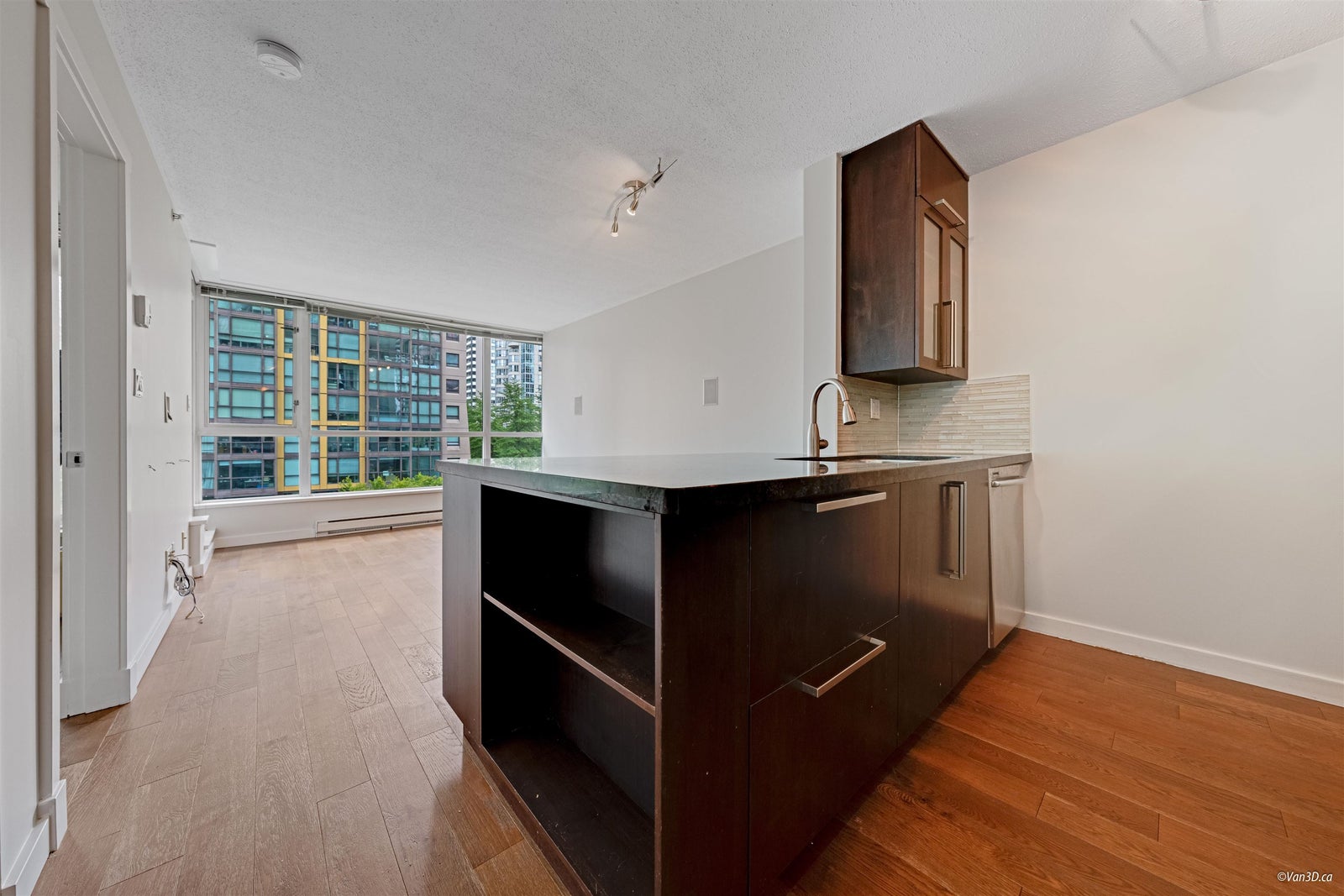 Welcome to "The George" on the edge of Coal Harbour with water views! This rarely available '01 plan offers a smart, efficient layout with no wasted space. Highlights include custom cabinetry, granite counters, s/s appliances, and oak hardwood flooring throughout. A generous den makes a perfect office. Well-maintained and well-funded building for peace of mind. One parking and one storage included. Rentals allowed. No pets. Don’t miss this opportunity—book your private showing today!