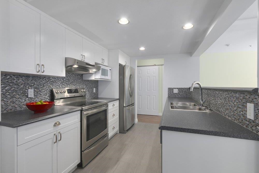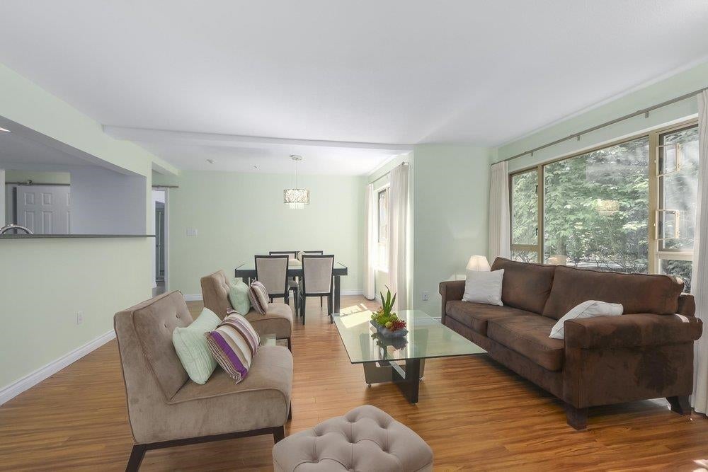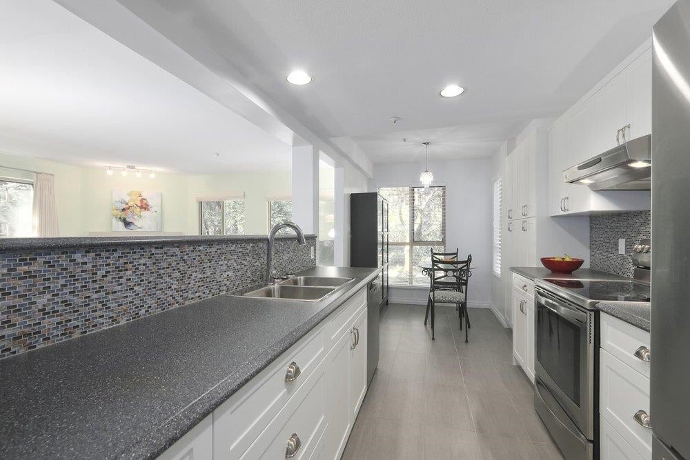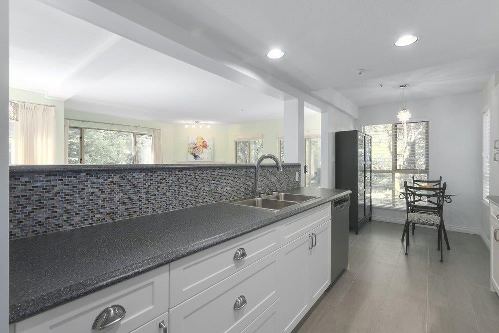 This two bedroom CORNER UNIT is over 1100 sq ft and on the NW ground floor with nothing but nature outside your windows. You'll appreciate the separation of bedrooms and two bathrooms. The renovations were done 9 years ago and feature laminate flooring throughout and pot lighting. Kitchen cabinets are white w/soft drawer close, glass blue mosaic back splash, granite counter tops and tile flooring. The primary bedroom has a NO LIP shower w/his and hers sinks. The living room and dining room are spacious with a square functional layout perfect for home size furniture. THE CLASSICS is across the street from Parkgate Shopping Mall, Parkgate Recreation Center & Library. Loads of great walking and hiking trails and ski slops up the hill! Quick possession is possible. NO PUBLIC Open Houses