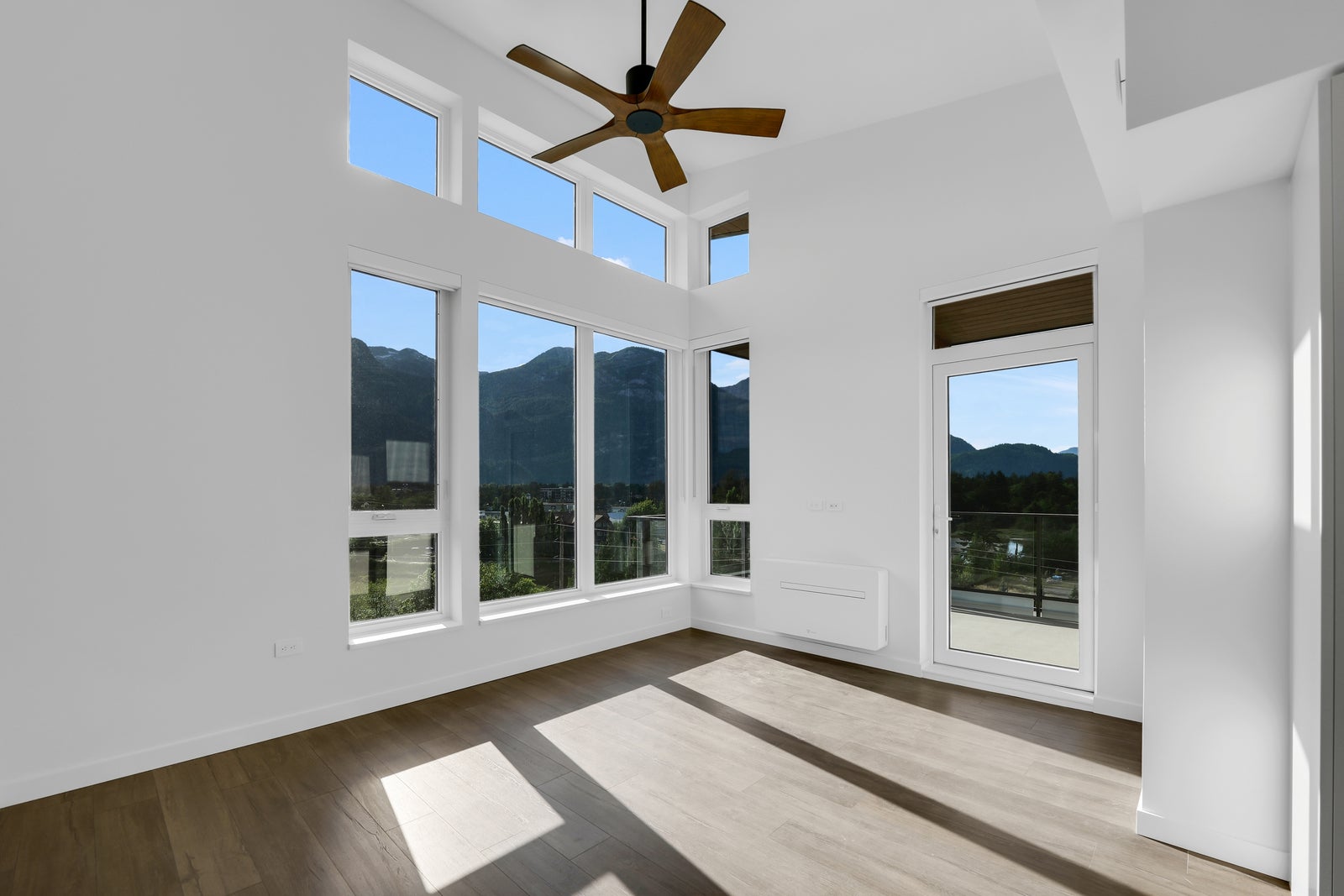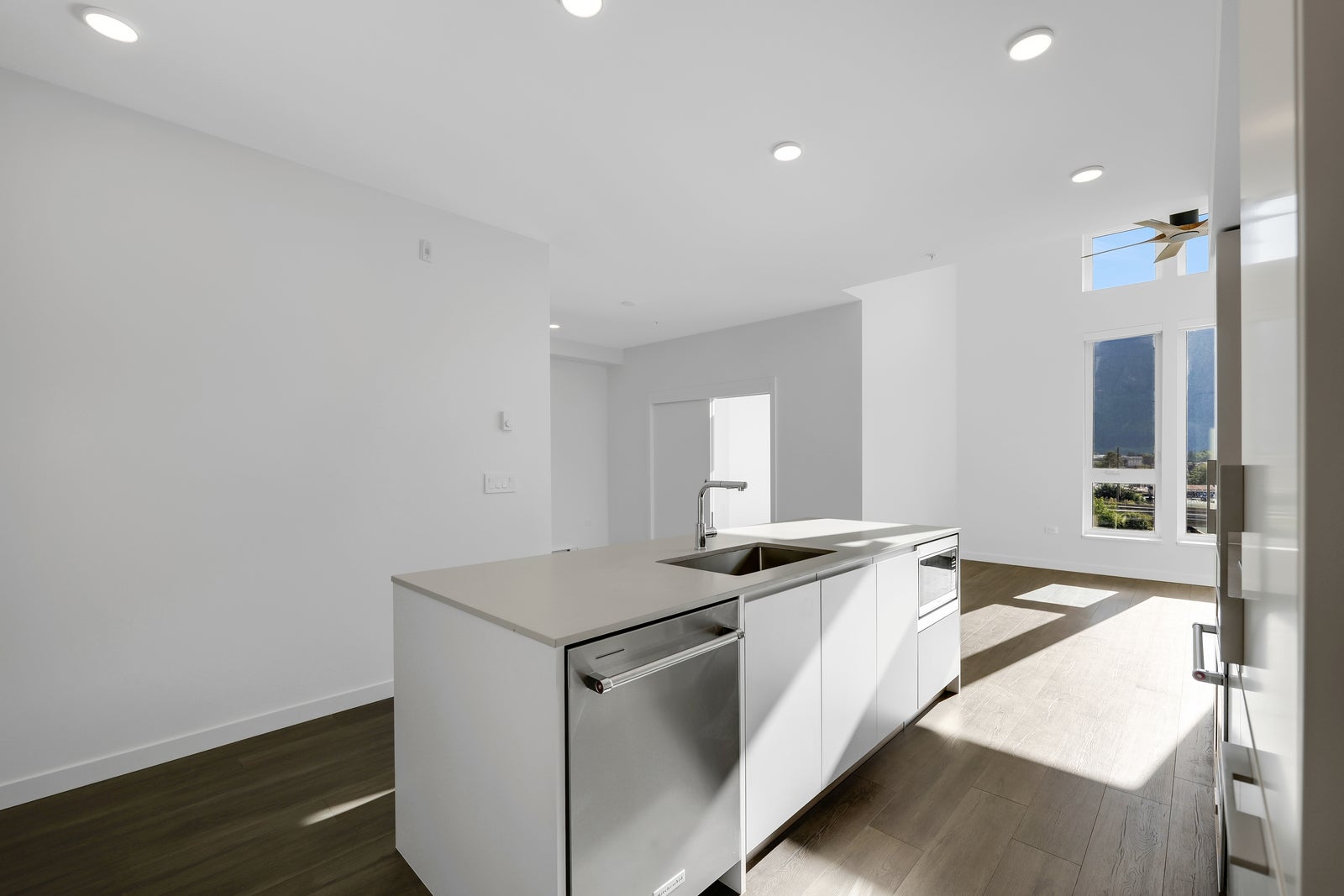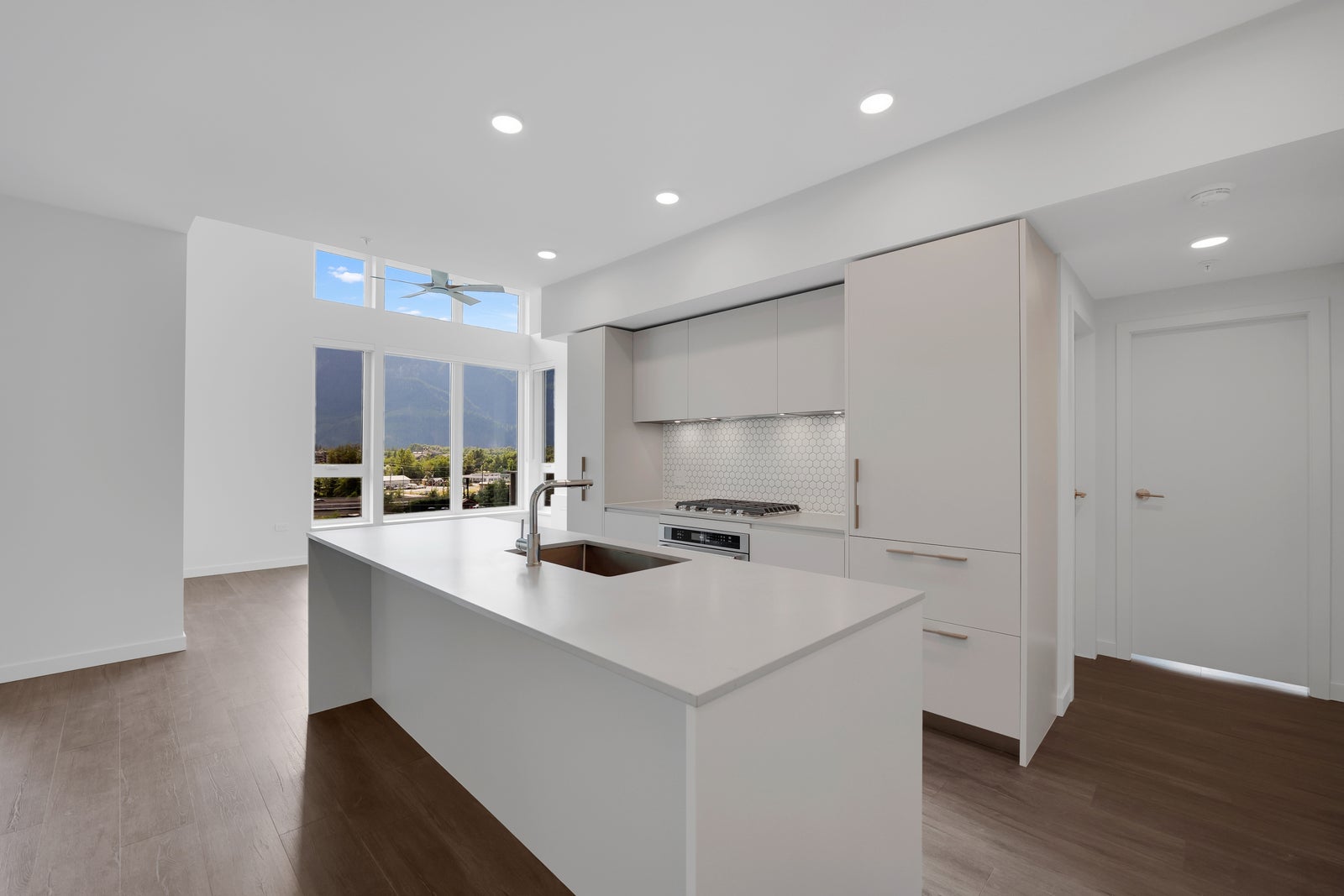 Welcome to the crown jewel of Redbridge, a brand-new 3-bedroom, 2-bathroom penthouse that blends refined design with the breathtaking natural beauty of Squamish. Set within Kingswood Properties’ visionary community, this home is a testament to thoughtful planning and elevated craftsmanship. Soaring 13-foot vaulted ceilings flood the living area with natural light and frame southwest mountain views. The Italian kitchen features a 5-burner gas cooktop, integrated appliances, and premium cabinetry. Spa-inspired bathrooms and custom built-ins add comfort and style throughout. Redbridge offers unparalleled amenities, including a wellness centre with hot/cold plunge pools, infrared sauna, gym, yoga studio, co-working space, and more - all designed to support a balanced, elevated lifestyle.