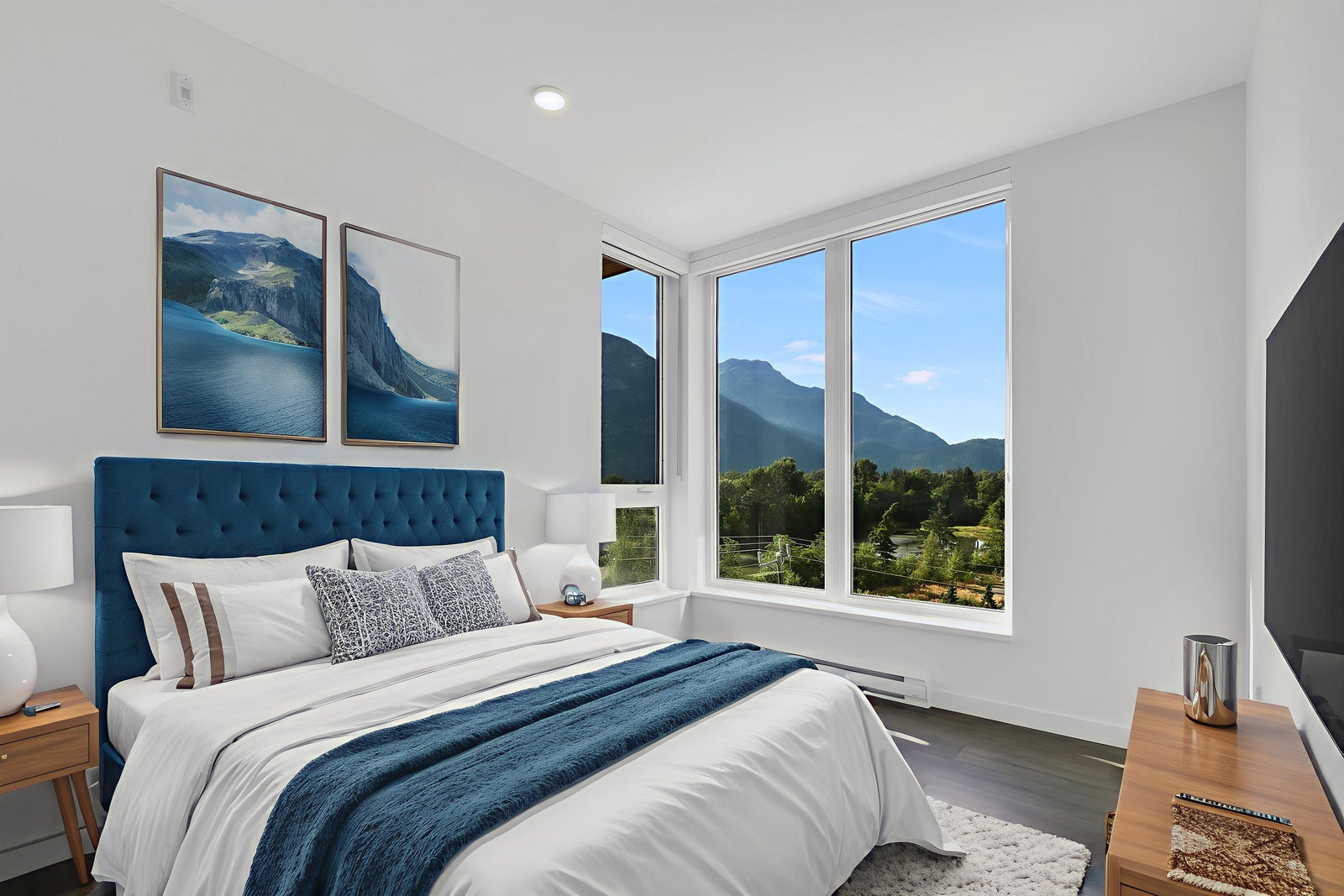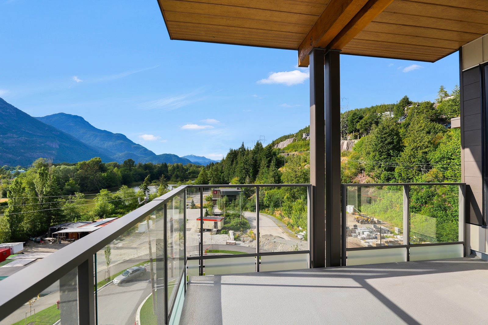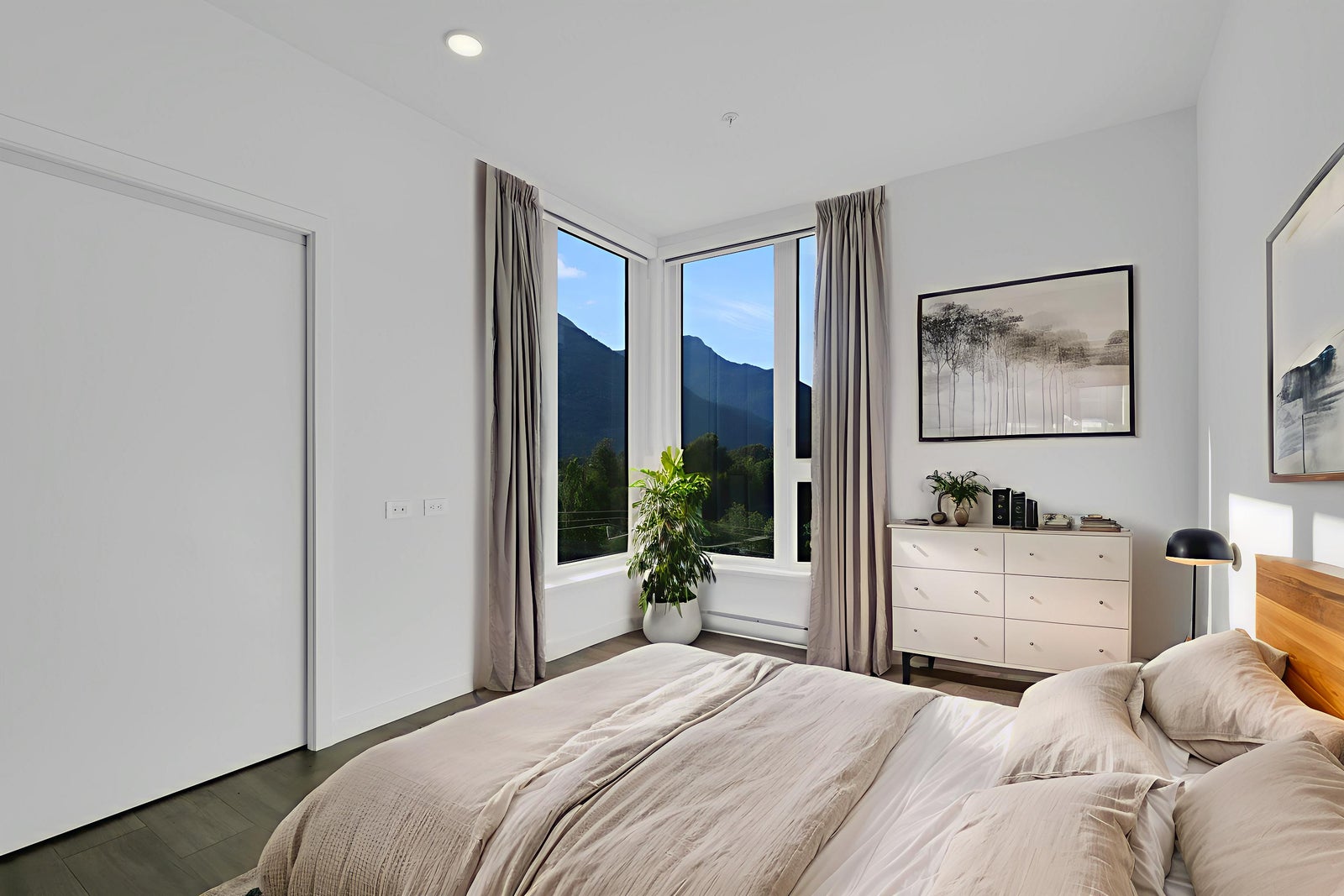 Welcome to the crown jewel of Redbridge, a brand-new 3-bedroom, 2-bathroom penthouse that blends refined design with the breathtaking natural beauty of Squamish. Set within Kingswood Properties’ visionary community, this home is a testament to thoughtful planning and elevated craftsmanship. Soaring 13-foot vaulted ceilings flood the living area with natural light and frame southwest mountain views. The Italian kitchen features a 5-burner gas cooktop, integrated appliances, and premium cabinetry. Spa-inspired bathrooms and custom built-ins add comfort and style throughout. Redbridge offers unparalleled amenities, including a wellness centre with hot/cold plunge pools, infrared sauna, gym, yoga studio, co-working space, and more - all designed to support a balanced, elevated lifestyle.