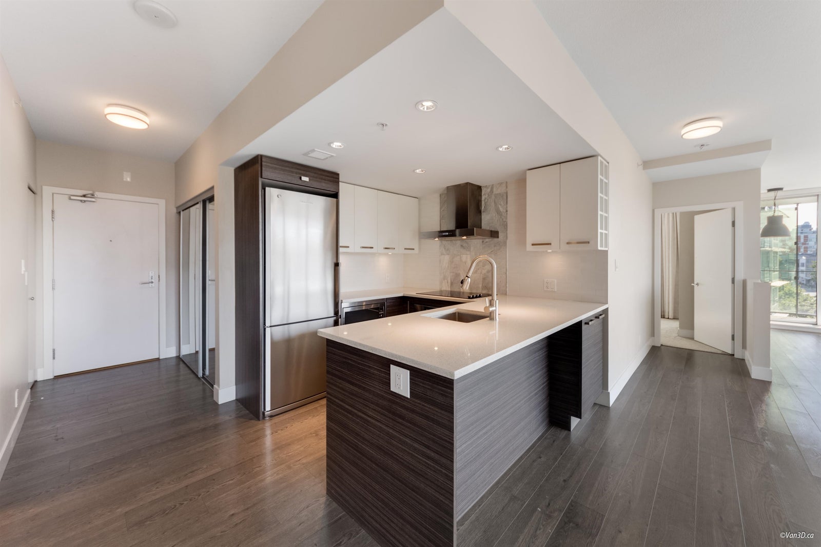 Welcome to the Residences at West – Corner Unit in Olympic Village! This bright & spacious 2 bed+ den home offers floor-to-ceiling windows that flood the space with natural light. Enjoy open-concept living with a stylish kitchen featuring stainless steel appliances and quartz countertops, seamlessly connecting to the generous living and dining area. The well-appointed primary bedroom includes a spa-like ensuite. A versatile den provides the ideal space for a home office or extra storage, and the oversized patio is perfect for summer evenings and BBQs.1 parking and storage locker included. Amenities include a concierge, gym, and party room in this pet-friendly building. Steps from the SkyTrain, AquaBus, False Creek Seawall, top restaurants and entertainment.